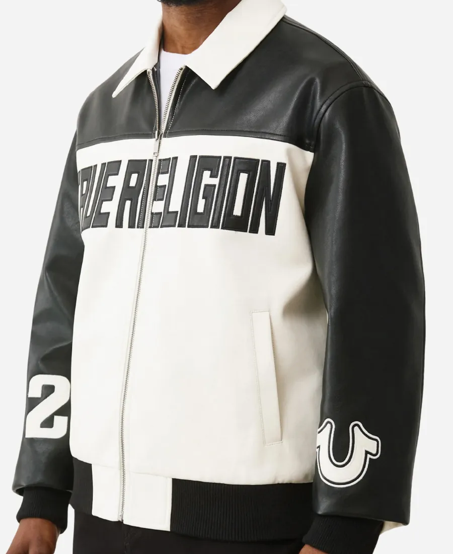 True Religion Faux Leather Racing Black And White Zipper Jacket