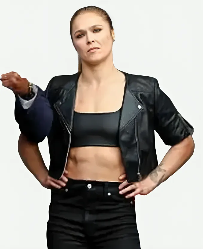 UFC 2026 Ronda Rousey Cropped Leather Jacket