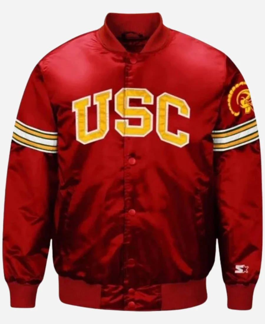 Starter USC Trojans Football Red Satin Bomber Jacket For Sale