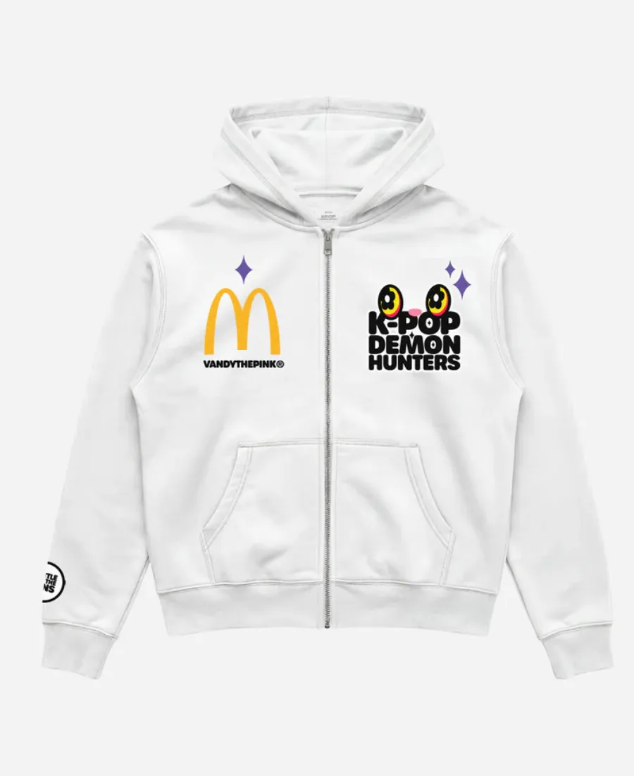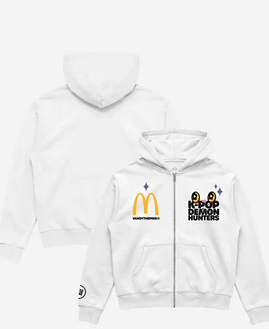 Vandy The Pink x Netflix’s KPop Demon Hunters x McDonald’s Logo White Full Zip Hoodie