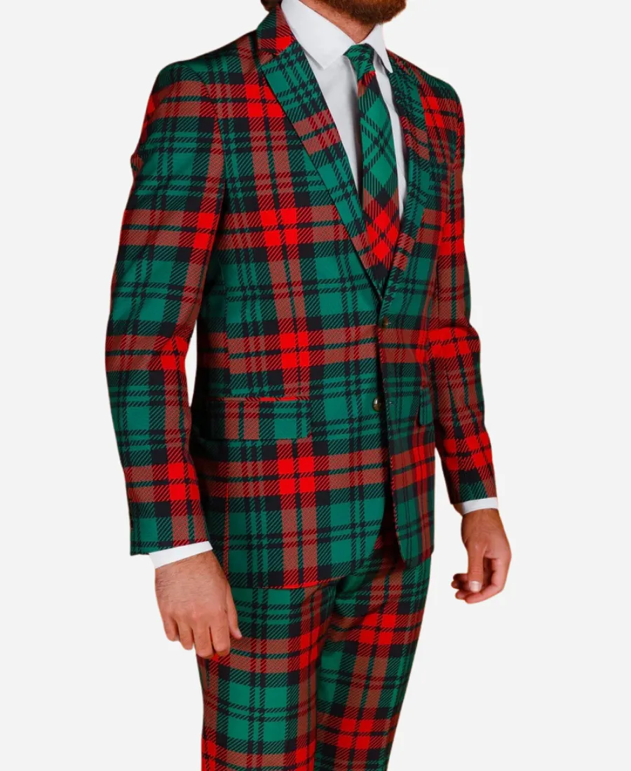 Men’s Western Style Plaid Ugly Red & Green Christmas Suit – For Sale