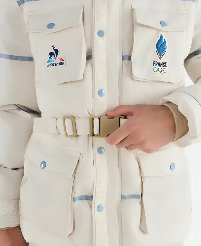 When warmth meets national pride, the magic happens. This spectacular 2026 Olympics Team France Jacket is the best example. Moreover, this beautiful, white, bright masterpiece is now available at the Jacket Era in premium parachute material. The professionals of our fashion house craft this white parachute jacket with top-notch stitching and details. It comes with long sleeves, rich ribbed snap-tab cuffs, and a snap-tab front with a belt, making it easy to wear. However, it features a high-quality, delicate inner that keeps you warm and comfortable even in chilly weather. To enhance its style and comfort, this white outerwear features a stand-up collar with an adjustable, detachable hood. The eye-catching branding of Le Coq Sportif and the Olympic Team France on the chest pockets makes it look more interesting. Thus, grab it now to stay warm, stand proud, and represent Team France in style.