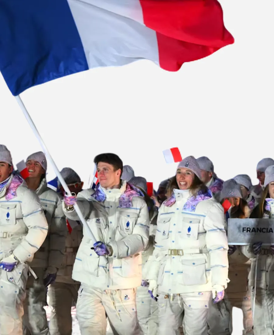 Ready to wrap yourself in comfort while cheering for Team France? Wear the trendy Winter Olympics 2026 Opening Ceremony Team France Jacket. A perfect investment to elevate your winter look with the pride of Team France. Yes, for you all, especially for the fans, the Jacket Era is here with this fascinating white jacket. Furthermore, it is not an ordinary jacket. It is a masterpiece that comes from a historic French sportswear brand, Le Coq Sportif. The famous Le Coq Sportif manufactures this jacket for the athletes of Team France for the 2026 Winter Olympic Games Opening Ceremony in Italy. On the other hand, this breathtaking white jacket is now available in our latest collection as a flawless imitation. So, what are you waiting for? Take your hands to this jacket now to keep the chill out and your Team France passion shining!