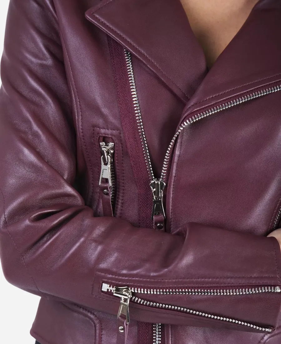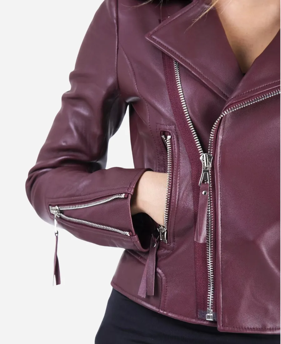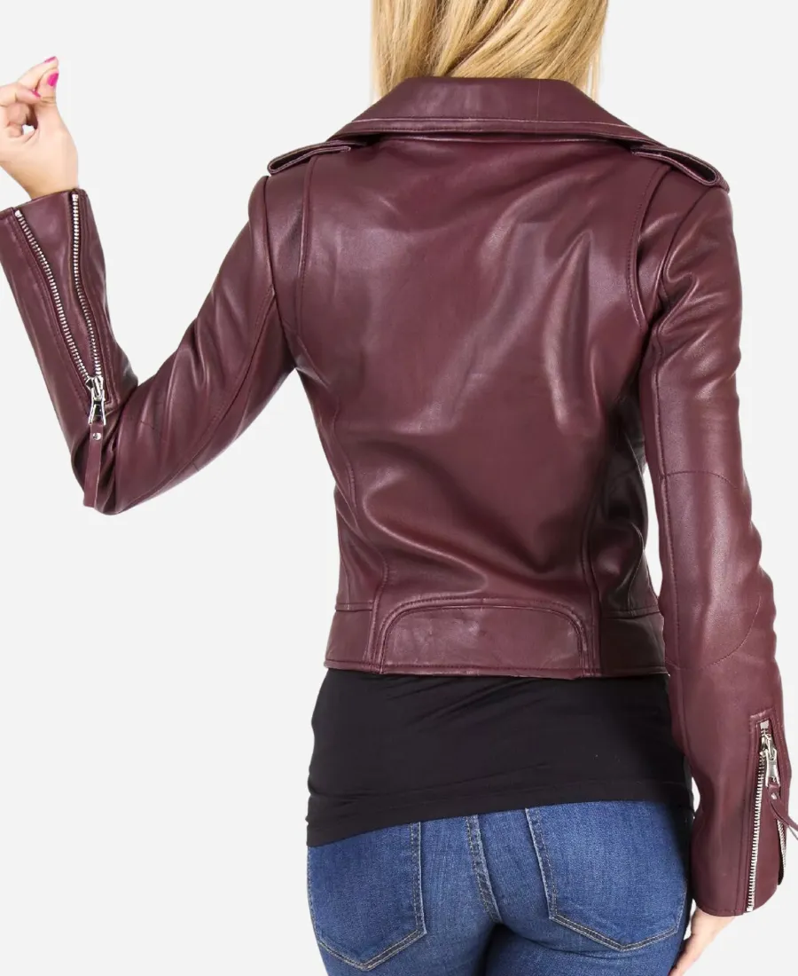 Women’s Burgundy Motorcycle Leather Jacket – For Sale