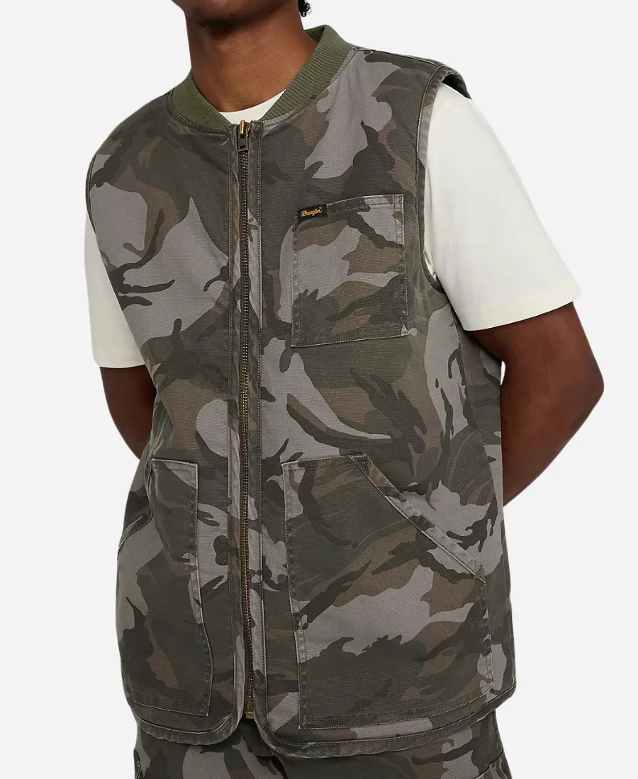 Wrangler x Stranger Things S05 Finn Wolfhard Camo Full Zip Vest