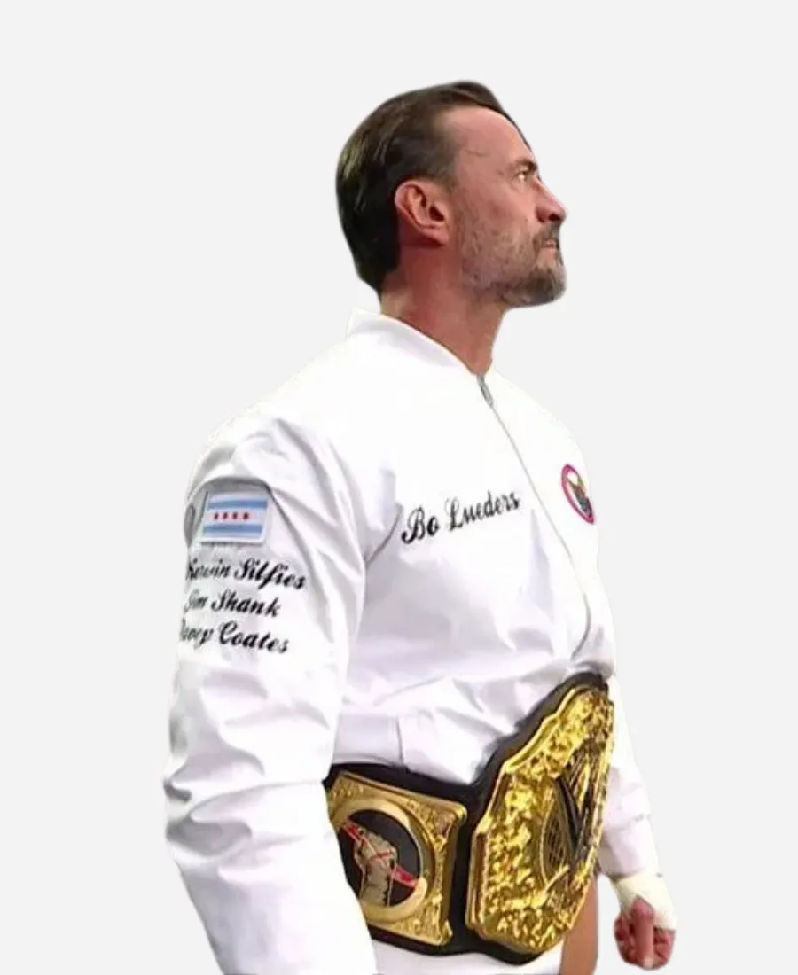 2026 WWE CM Punk WrestleMania 42 Night 2 White Bomber Jacket