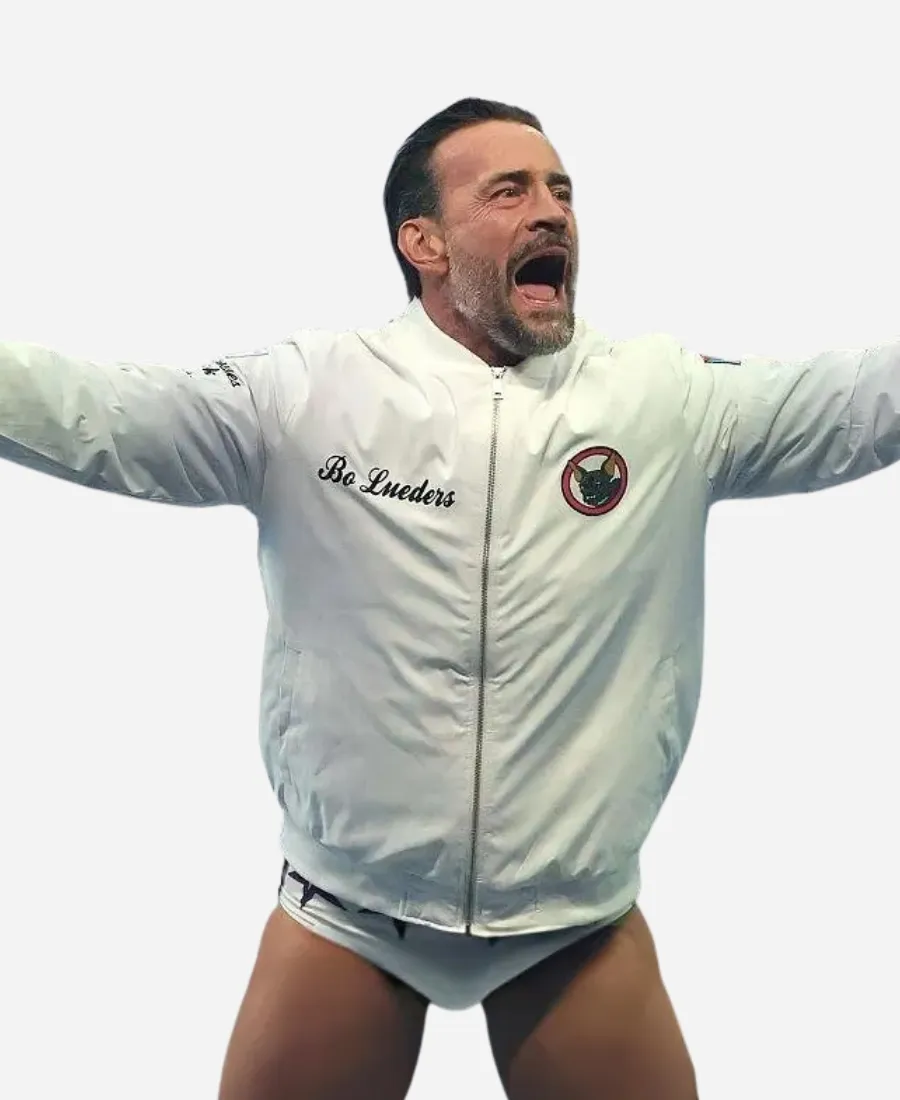 Purchase this 2026 WWE CM Punk WrestleMania 42 Night 2 White Bomber Jacket now from here at an affordable sale price.