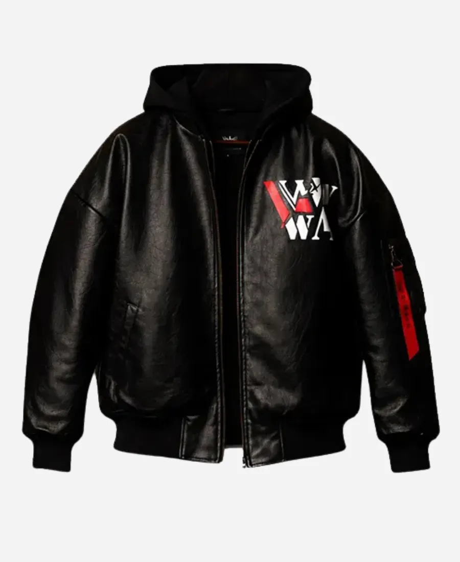WWE RAW 2026 Liv Morgan RAW is WAR Black Leather Hooded Bomber Jacket