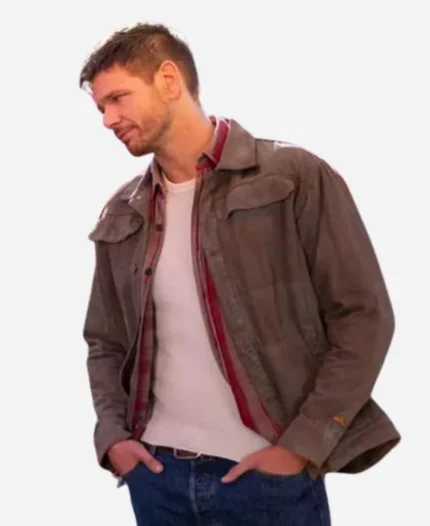 Men’s Brown Bomber Leather Jacket with Rib Collar