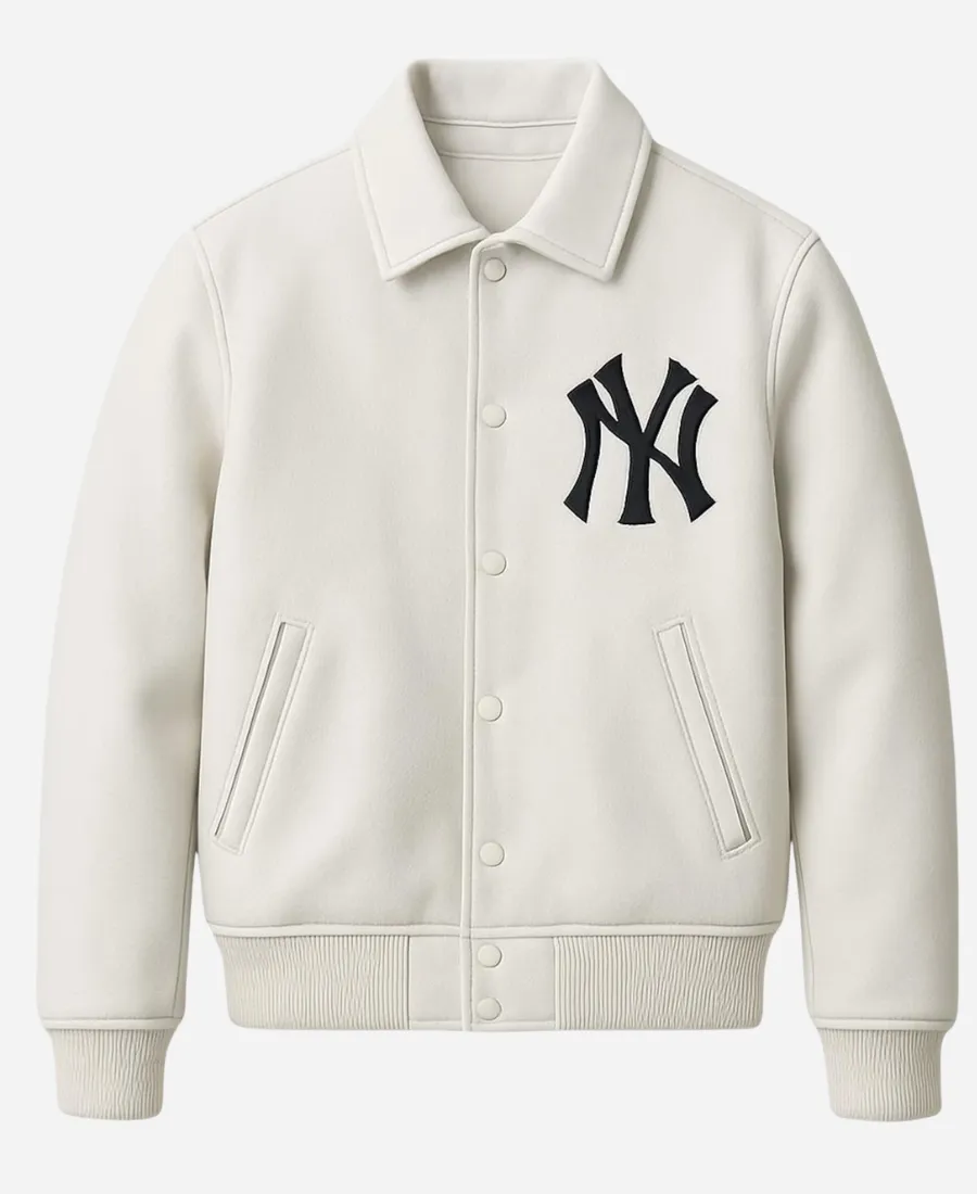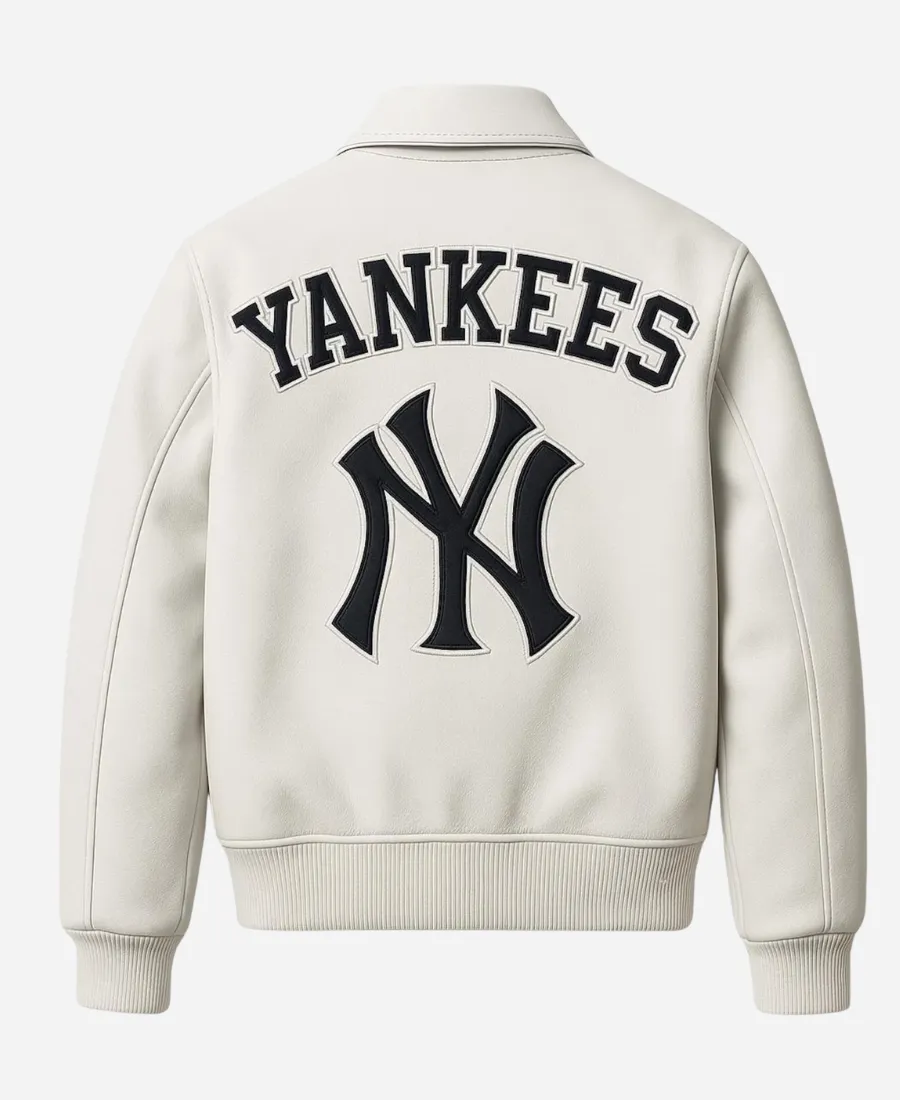 New York Yankees Retro Baseball White Leather Varsity Bomber Jacket